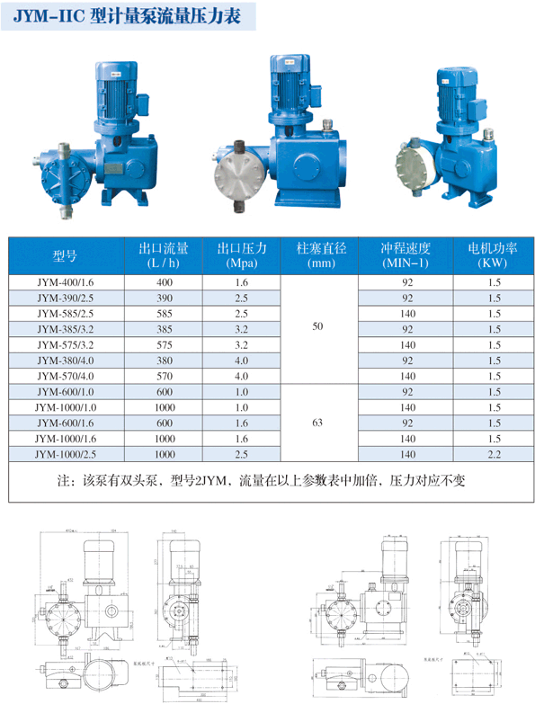計量泵 >> JYM-ⅡC型計量泵 最大流量為2000L/H,最高耐壓4.0Mpa