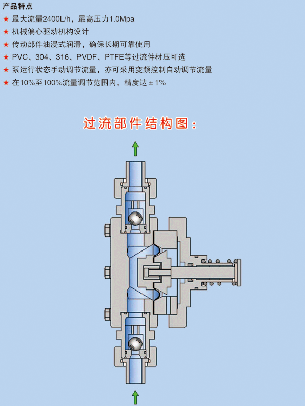 計量泵 >> JJM-ⅡA型計量泵 最大流量為400L/H,最高耐壓1.0Mpa